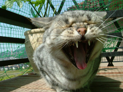猫のあくびはほんとに狙って撮るのは難しいニャ。