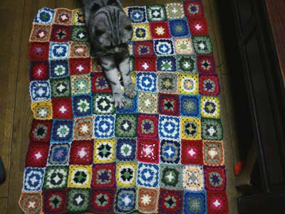 猫も一緒にあったまれるようにセッセとモチーフを編んでいます^^