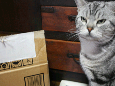 箱を見たら父ちゃん猫はハッスル!ハッスル!笑