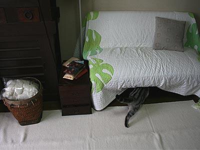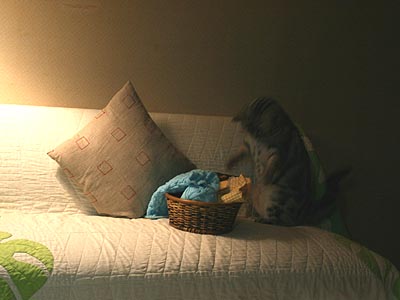 ちょっとした気まぐれで編み始めた椅子の上の水色の物の他に・・