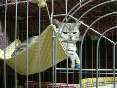 ハンモック! ねこちゃん、ハンモックにも乗れるんだ~。