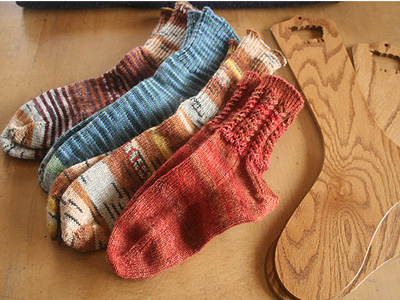 いつもあまり糸で編んでいるすばらしい色彩の靴下。すごく気になる。あまり糸なのにどうして左右対称に編めちゃうの?それは左右同時進行だからとか?^^;