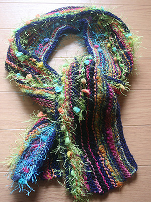 クレージーマフラー巻いたら楽しい気分になれそうです。☆ rocoさんっちでお会いできて良かったです。パソコンの前に座る時間が最近ほとんど無いので、たまにしかお邪魔する事が無いかもしれませんが、これをご縁に又、お邪魔させて下さいね。♪