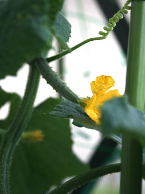 プランター育ちのキュウリの赤ちゃんスクスク成長中♪