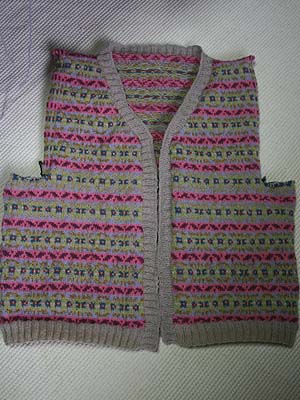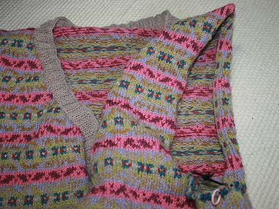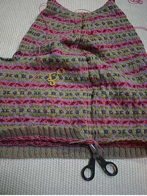 続いて袖、ここも『縫い代』みたいな部分を編んであります。