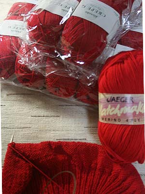 ※ベストを編んだのより暗めの佳い色の赤い糸♪