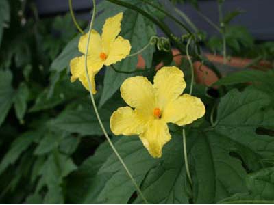 暑さと共に狭いベランダで勢い良く茂り出したいろんな形の葉っぱたち