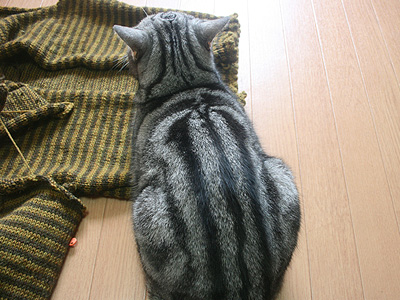 洋書パターンの 裾のゴム編み にトライしてみたかったトラさん色のカーデガン